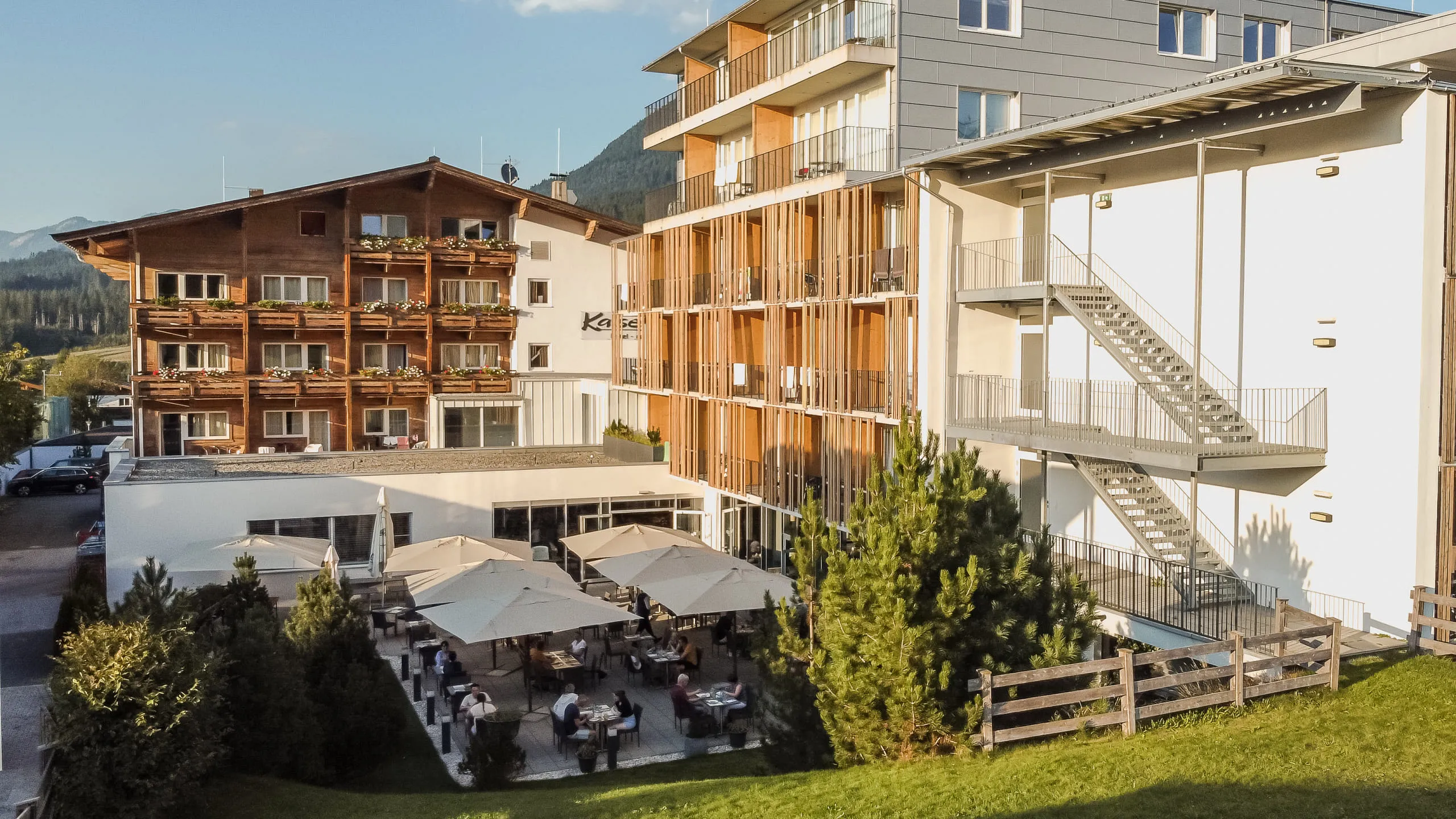 Das Alpenhotel Kaiserfels liegt direkt an der Gondelbahn Eichenhof und bietet einen perfekten Einstieg in die Ski- und Sportregion von St. Johann in Tirol. Alle 130 Doppel- und Familienzimmer sowie die modernen Suiten sind großzügig ausgestattet und bieten kostenloses WLAN, digitales Infotainmentsystem und einen tollen Blick auf die umliegende Bergwelt.
